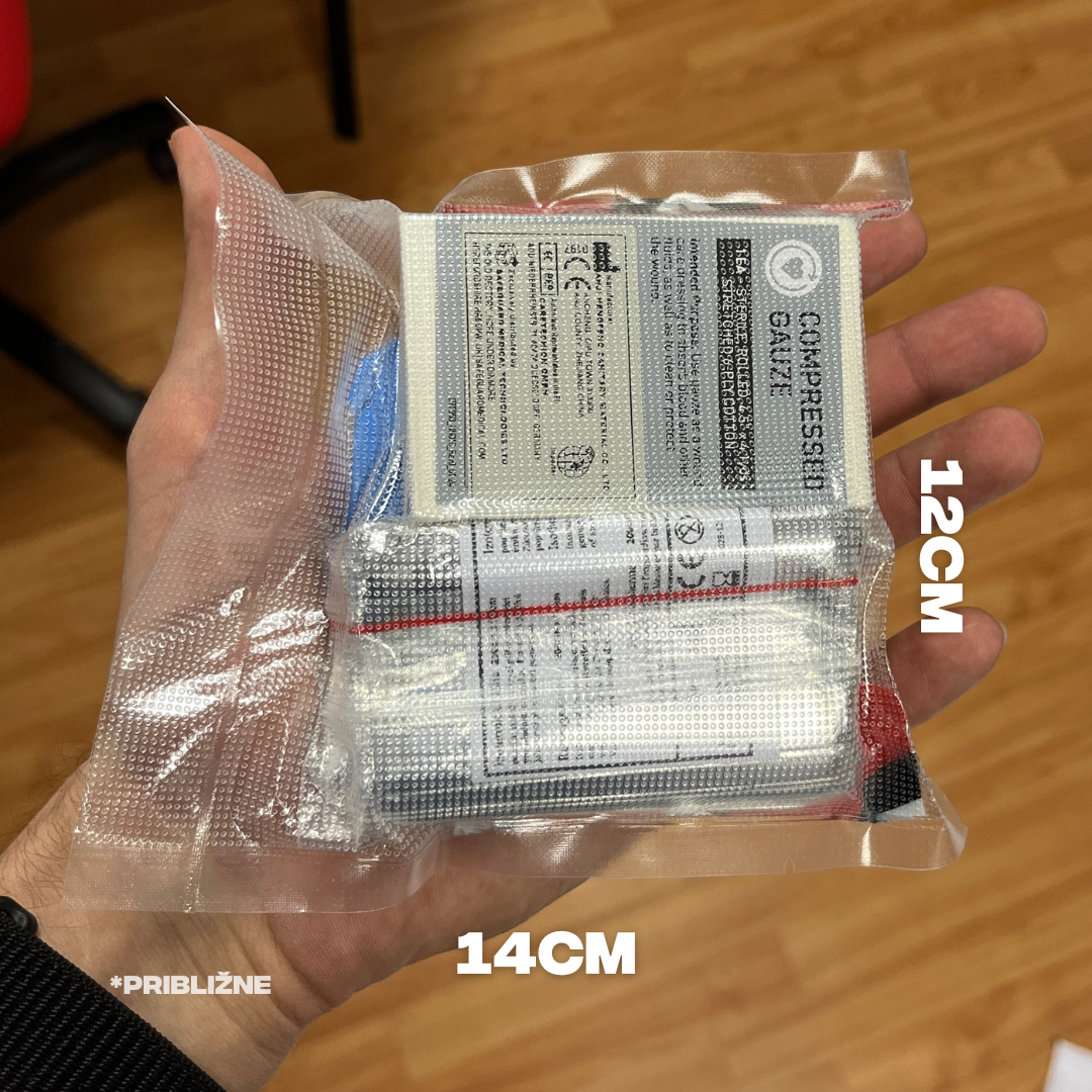 IFAK MINI je kompaktný, vákuovo balený balíček prvej pomoci určený na rýchlu reakciu pri masívnom krvácaní. Vďaka malým rozmerom ho jednoducho uložíš do auta, batohu, vrecka alebo každodennej výbavy.